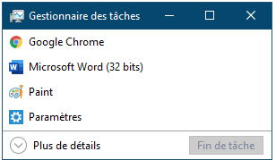 Le gestionnaire de tâches affiche, outre les applications actives toutes les tâches en cours en premier plan et en arrière-plan.