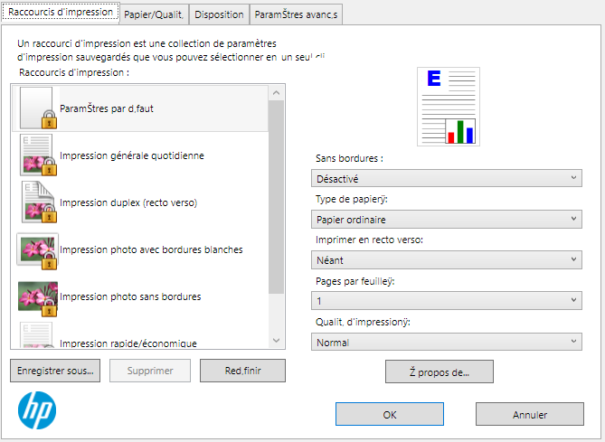 Afficher les préférences d'impression de l'imprimante