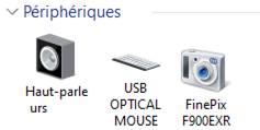 Tous les appareils reliés physiquement ou non à l'ordinateur sont reconnus et affichés ici.