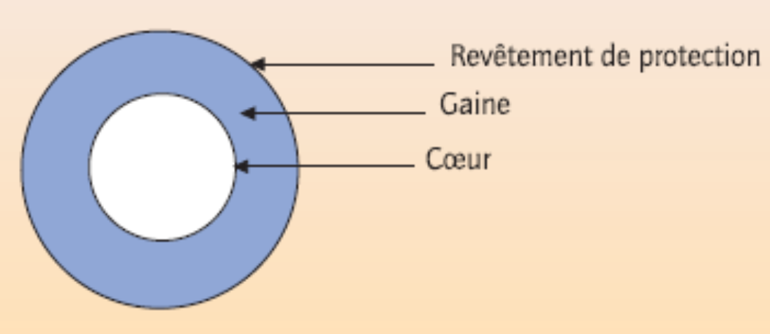 - La gaine optique entoure le cœur d'un matériau dont l'indice de réfraction est inférieur à celui du cœur, de telle manière à confiner la propagation des rayons lumineux