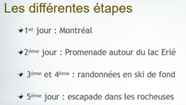 Dans la présentation "voyage création" et dans la 2ème diapositive "Notre voyage au canada", saisir les sous-titres suivants puis enregistrer
