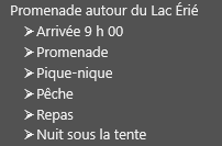 Saisir "2ème jour : promenade autour du lac Érié" : ![]()