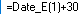 Date_E(1)+30 : date de saisie de la 1ère ligne + 30 jours